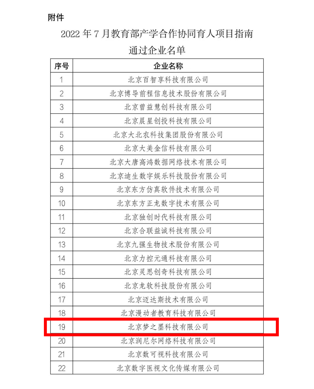 夢之墨入選2022年7月教育部產(chǎn)學合作協(xié)同育人項目申報指南企業(yè)名單